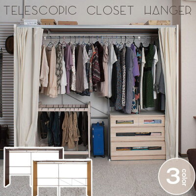 【P5倍 9/1 5-10時&最大400円クーポン9/1-9/6 10時】クローゼットハンガー カーテン付き 伸縮式 幅188〜305cm ハンガーラック クローゼット ワードローブ パイプハンガー おしゃれ 大容量 収納 目隠し nj-0355-0357
