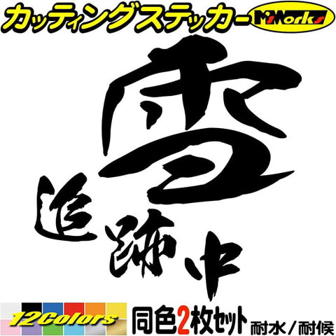 \クーポン有/ スノーボード スキー ステッカー 雪 追跡中 (2枚1セット) ・2 カッティングステッカー スノボ ボード ツール ボックス ケース ワンポイント 雪板 アイテム 冬 スノボー 雪 文字 防水 耐水 アウトドア 切り文字 デカール 転写 シール 全12色(95mmX95mm)