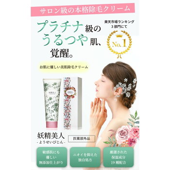 《 ムダ毛が気になり始めたお子様にも 》敏感なお子様のお肌にはカミソリによる肌荒れや色素沈着などの心配がない、除毛クリームがおすすめです! 妖精美人の除毛クリームは、 ◯ アルコールフリー ◯ パラベンフリー ◯ 着色料フリー のトリプルフリー処方に加え、たっぷりの保湿成分を配合しているので お子様の肌にも安心してお使いいただけます。