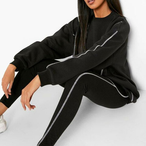 boohoo(ブーフー)BOOHOO コントラストステッチのスウェットとレギンスのセット セットアップ 上下 レディース 女性 インポートブランド 小さいサイズから大きいサイズまで 20代 30代 40代 プレゼント 誕生日