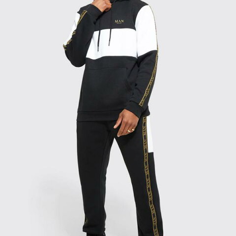 boohoo(ブーフー)BOOHOO カラーブロックマンテープフード付きトラックスーツ 上下 メンズ 男性 インポートブランド セットアップ トラックスーツ 大きいサイズまで 20代 30代 40代 プレゼント 誕生日