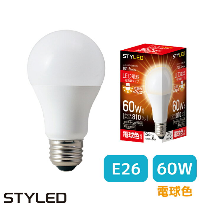 LED電球 E26口金 60W相当 一般電球形 広配光タイプ 電球色(810lm) 関連商品はこちらLED電球 E26口金 40W相当 一般電球形 広...440円LED電球 E26口金 40W相当 一般電球形 広...440円【2個セット・1個当たり380円】LED電球 ...760円【2個セット・1個当たり380円】LED電球 ...760円【2個セット・1個当たり320円】LED電球 ...1,280円【4個セット・1個当たり320円】LED電球 ...1,280円LED電球 E26口金 60W相当 一般電球形 広...530円