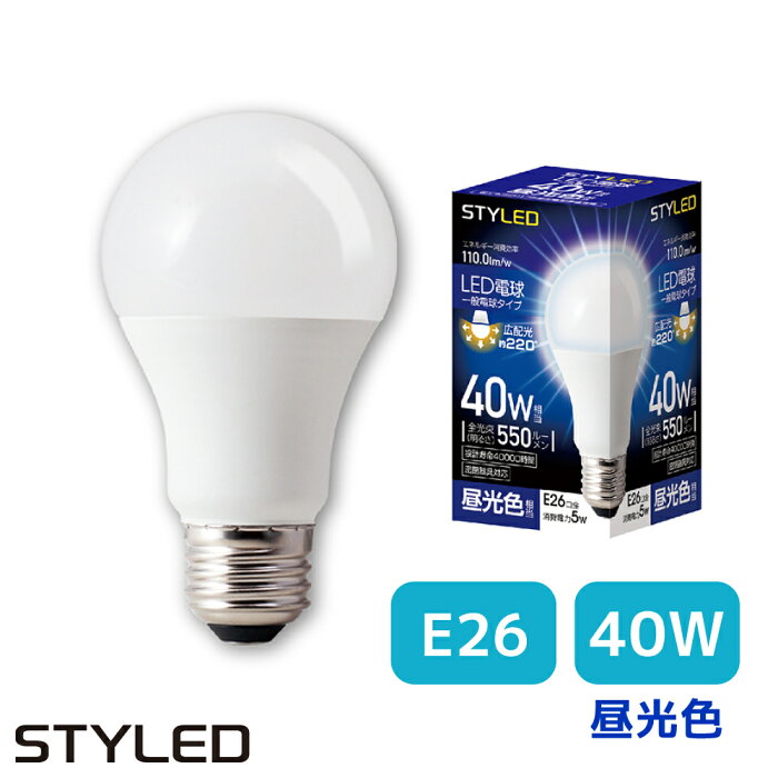 LED電球 E26口金 40W相当 一般電球形 広配光タイプ 昼光色(550lm) 省エネ スポットライト