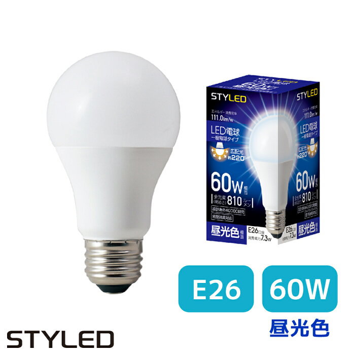LED電球 E26口金 60W相当 一般電球形 広配光タイプ 昼光色(810lm) 省エネ スポットライト