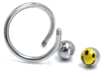 [ 16G スパイラルバーベル ] スマイル スパイラル ツイストバーベル 16ゲージ 16GA ボディピアス サージカルステンレス316L メンズ レディース 回る スクリュー スクリュウ ネジボール へそ 耳 軟骨 クチ 口 臍 ヘリックス クルクル 巻く スマイル君 スマイルクン ニコちゃん