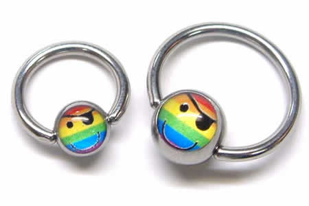 [ オモシロ リング型 ボディピアス 14G ] レインボーギャング キャプティブビーズリング 14ゲージ 8mmボール 14Ga メンズ レディース ボディーピアス サージカルステンレス316L キャプティブリング CBR BCR シンプル プレーン 耳 軟骨 ヘリックス 海賊 虹色 スマイルくん