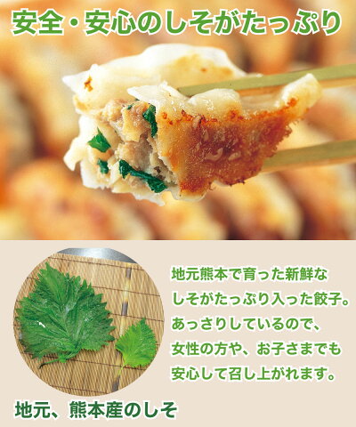 熊本県産のしそを贅沢に使用 ひと口食べればしそのいい香りが口に広がるしそ生餃子。