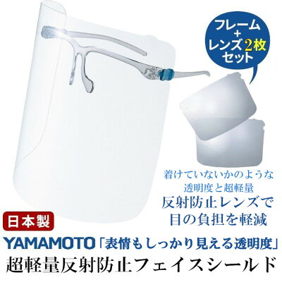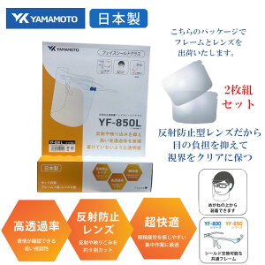 山本光学 フェイスシールド 反射防止 医療用 日本製 眼鏡型 メガネ めがね グラスシールド フェイスガード YAMAMOTO YF-850L 軽量 眼鏡の上から シールド交換可能 製造業用