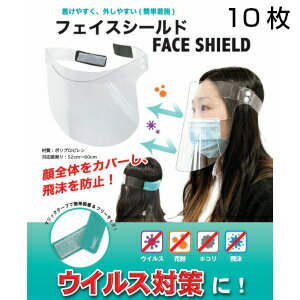 【キャンペーン中】【日本製】フェイスシールド 10枚医療用 業務用 簡易包装マジックテープ眼鏡併用可 曇りにくい