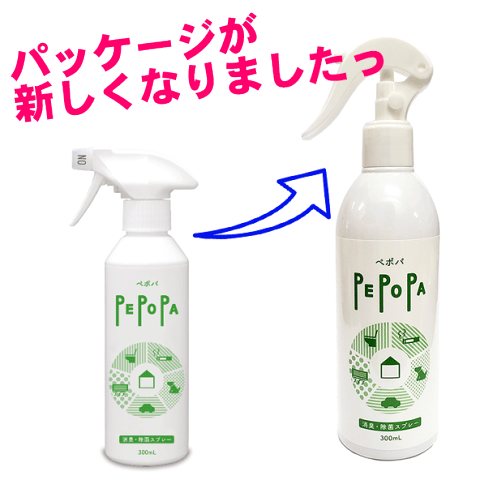 小さいお子様、高齢者、ペットにもご使用可能!◎ ペポパ消臭・除菌スプレー(PS-03-001) 内容量:300mL×3本セット 内容成分:次亜塩素酸ナトリウム(食品添加物) 液性:弱アルカリ性 タバコ臭、ペット臭、体臭、汗のニオイ、食べ物のニオイ、おう吐臭、糞尿臭に作用する消臭・除菌スプレーです。