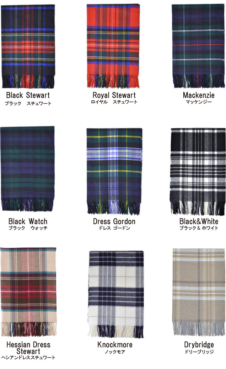 商品名 Cashmere Tartan stoles/タータンチェックストール カラー/アイテムナンバー ・Black Stewart ブラックスチュワート (WA000056KU032400) ・Royal Stewart ロイヤルスチュワート (WA000056KU030300) ・Mackenzie マッケンジー (WA000056KU030900) ・Black Watch ブラックウォッチ (WA000056KU031700) ・Dress Gordon ドレスゴードン (WA000056KU031200) ・Black&White ブラック&ホワイト (WA000056KU007900) ・Hessian Dress Stewart ヘシアンドレススチュワート (WA000056KU001000) ・Knockmore ノックモア (WA000056RU538000) ・Drybridge ドリーブリッジ (WA000056KU006500) ・Scott Weathered スコットウェザード (WA000056KU10600) ・Roseisle ローズアイル (WA000056RU537900) ・MacFadyen マクファンディン (WA000056KU010500) ・Silver Bannockbane シルバーバノックベーン (WA000056KU049900) ・Alexander Hunting アレクサンダーハンティング (WA000056KU010300) ・Grey MacPherson グレイマクファーソン (WA000056KU010000) ・MacLeod of lewis マクラウドオブルイス (WA000056KU009700) ・Baird ベアード (WA000056KU009800) ・Wallace ウォレス (WA000056KU009900) ・Gordon Blush ゴールデンブラッシュ (WA000056KU010900) ・Campbell of Argyll Weathered キャンベルオブアーガイル (WA000056KU011000) サイズ/約cm 長さ 190cm 幅 72cm 採寸方法を確認→ 素材 カシミア100% 原産国 スコットランド ご注意点 ※平置きでの商品採寸を行っております。