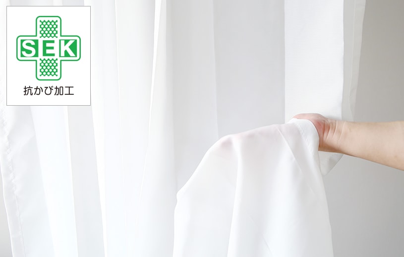 抗かび加工レースカーテンに、さらにUVカット機能をプラス すっかりレースカーテンの定番機能となった「UVカット機能」もばっちり。