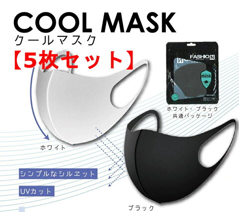 【送料無料】【5枚セット】布マスク クールマスク おしゃれ 夏 秋 黒 白 ブラック ホワイト 効果 おすすめ 風邪 洗える 繰り返し クール 小さめ 個包装