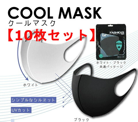 【送料無料】【10枚セット】布マスク クールマスク おしゃれ 夏 秋 黒 白 ブラック ホワイト 効果 おすすめ 風邪 洗える 繰り返し クール 小さめ 個包装