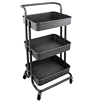 【中古】【輸入品・未使用】雑貨の国のアリス 2段 インテリア 3段 収納 キッチンカウンター キャスター付き ツールワゴン ハンドル付き キッチンワゴン (ブラック) [並行輸
