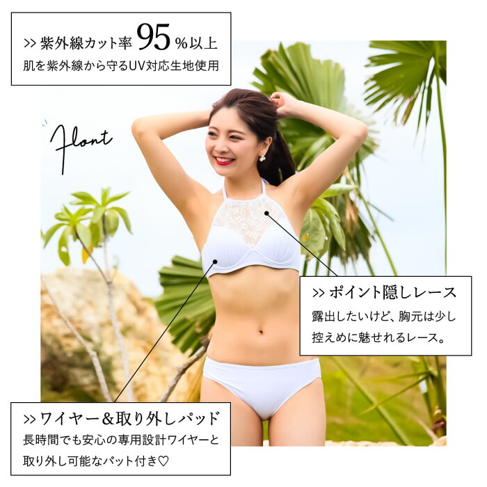しかし、ただ隠すだけではなく水着本来の持つシルエットや セクシーさを損なうことなく着こなすことのできる水着です 〇ハイネックのレースがバストUP効果に胸元をやんわり隠す見せない効果抜群!! 〇微調整が可能なアジャスター機能付き 〇しっかりとした幅のサイドが脇からのバストUP効果&カバーUP効果を実現 〇シンプルデザインだからこそ、ショートパンツなどを履いてもごわごわしないのでコーディネイトの幅が広がります 〇気持ち太めのサイドの幅がおなか回りを優しくカバーしてくれます 〇露出度を控えながらもお尻のラインを綺麗に見せるデザイン 注目キーワード 高校生 中学生 女子 おしゃれ 大人っぽい 10代 20代 30代 40代