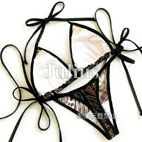 メール便 送料無料●視線ドキドキ シックな柄 セクシーTバック三角ビキニ水着(胸パッド入)/ブラウン【即日発送 ワンピース ワイヤー 紐パンツ 競泳 水泳 スイムウェア タンキニ 浮き輪 ボート タンガショーツ ラッシュガード サーフィン ブラジリアン 見せブラ ニプレス】