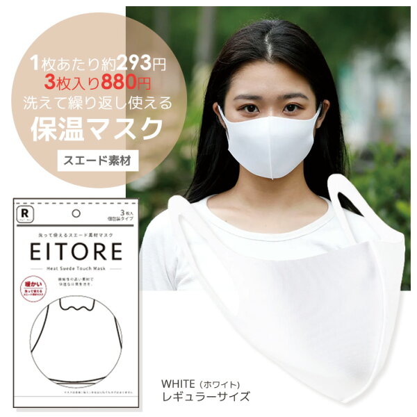 ベビー基準を満たしています ◆商品説明◆ ブランド EITORE【エイトワール】 - Heat Suede Touch Mask- アイテム 洗って使えるスエード素材マスク - Stretch Warm Mask- 枚数 個包装マスク3枚入り サイズ レギュラーサイズ | H120×W300mm ラージサイズ | H135 x W315mm カラー ホワイト ホワイト くすみベージュ くすみピンク くすみパープル くすみブルー ※画像は、できる限り実物に近い色味で掲載しておりますが、視聴環境によって多少の色の違いがあります。