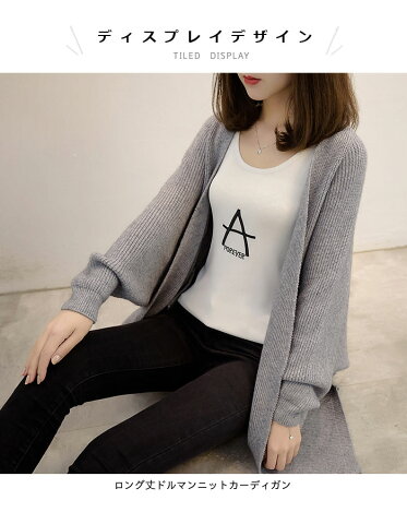 メーカー希望小売価格はメーカーカタログに基づいて掲載していますロング丈ドルマンニットカーディガン お出かけもお部屋でも着られます 選べるベーシックな6カラー展開となります ジップもボタンもつけず、シンプルな羽織タイプ ●おすすめポイント 《1》旬の雰囲気が溢れるシンプルなニットカーディガン 《2》ゆとりのあるドルマンシルエットで、大人女性の抜け感を放つ 《3》引き締めた袖口で、メリハリをつけてくれます ■カラー: アーミーグリーン ベージュ グレー アイボリー ブラック ブラウン ■サイズ: F【cm】着丈:76 バスト:114 袖丈:68 ■生産:中国製 ネコポス→全国一律240円宅配便→550円(北海道・沖縄県・九州地方は950円) ■3980円以上のお買い上げで送料無料 ※北海道・沖縄県・九州地方は別途地域料として400円を頂戴しております。