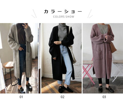 着回し力抜群のロング丈ニットカーディガン 肌触りよく、柔らかな生地感 便利なポケットが付いております さらっと羽織れるシンプルなノーボタンデザイン ●おすすめポイント 《1》使い勝手のロング丈ニットカーディガン 《2》ゆったりとしたシルエットで、大人の抜け感をアピール 《3》体型カバー効果も期待できるマキシ丈 ■カラー: 01 02 03 ■サイズ: F【cm】裄丈:76 袖幅:22 バスト:100-150 袖口幅:14 裾周り:50 着丈:102 ■生産:中国製 ■ ネコポス→全国一律240円宅配便→550円(北海道・沖縄県・九州地方は950円) ■3980円以上のお買い上げで送料無料 ※北海道・沖縄県・九州地方は別途地域料として400円を頂戴しております。